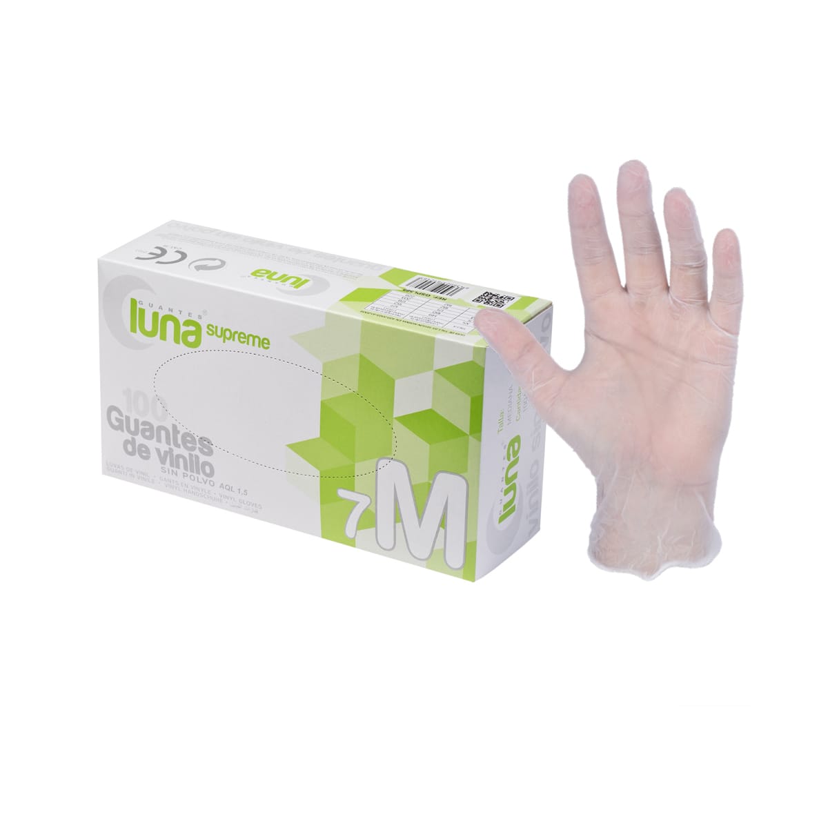 GUANTES VINILO DESECHABLES TRANSPARENTES SIN POLVO MARCA “LUNA” – GRAMAJE 4,5 GRAMOS
