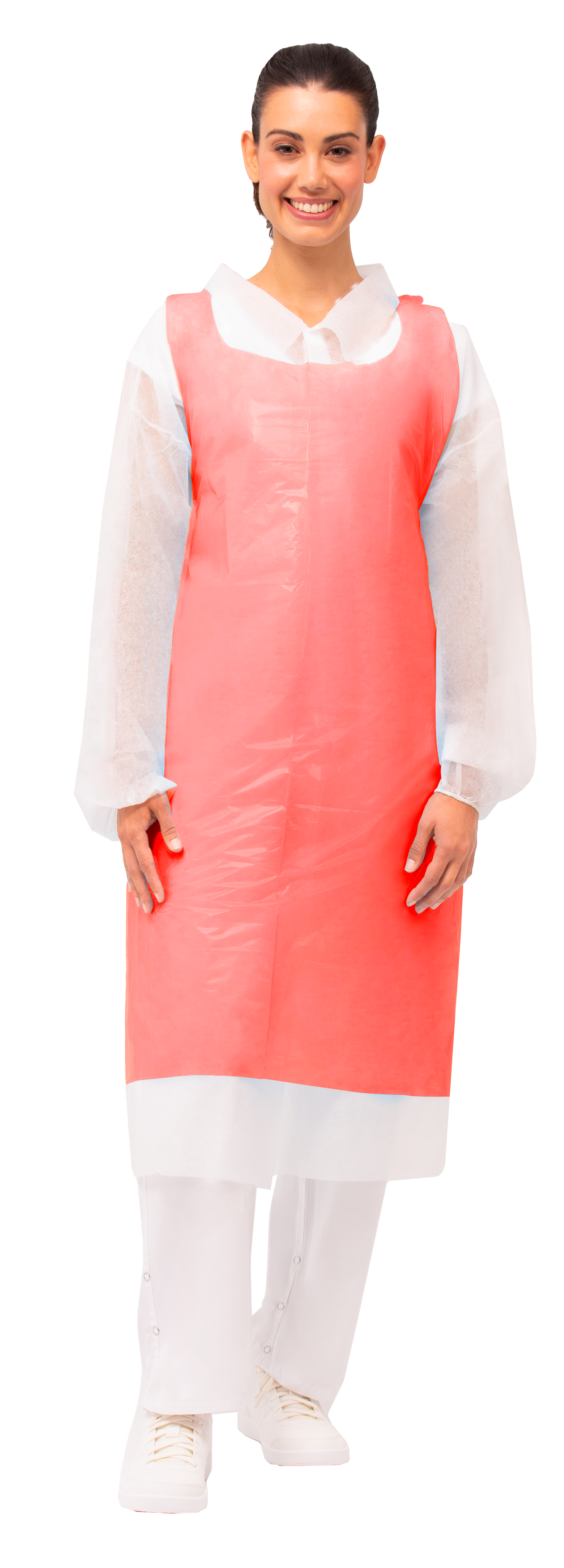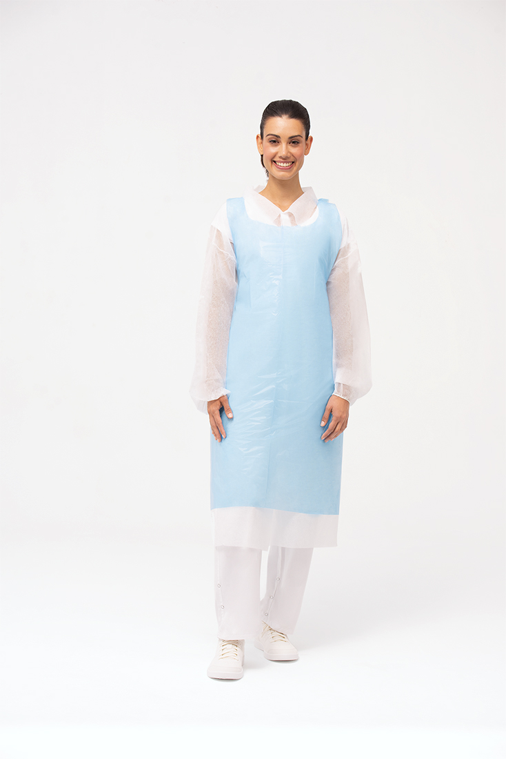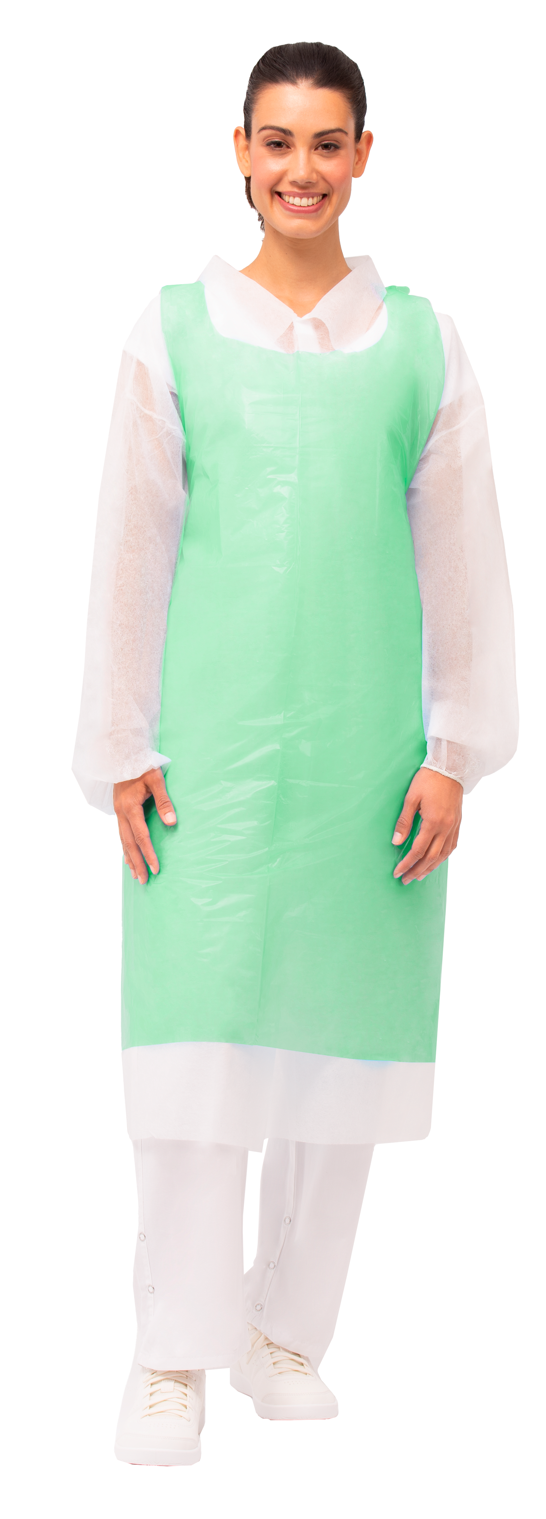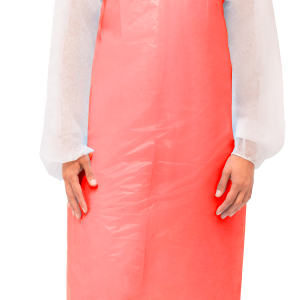 El delantal está confeccionado 100% en polietileno de baja densidad (LDPE), un material plástico flexible, ligero y resistente que presenta excelentes propiedades de impermeabilidad y resistencia a grasas, aceites y productos químicos suaves. Las 20 micras de espesor aseguran un equilibrio óptimo entre confort, resistencia mecánica y protección.