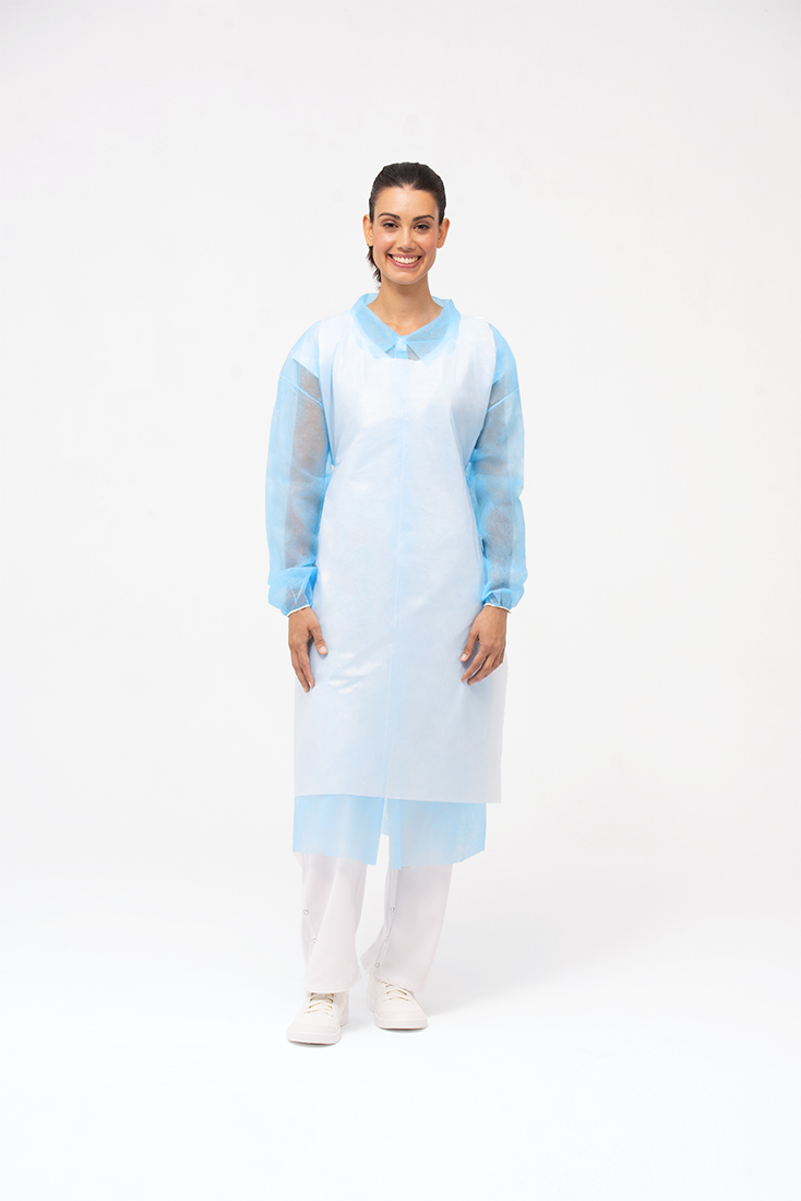 El diseño del delantal “SANTEX” ha sido optimizado para facilitar su colocación y garantizar comodidad al usuario durante largas jornadas. Se adapta bien a diferentes morfologías corporales, gracias a su forma anatómica y a las tiras posteriores para ajustar alrededor de la cintura.