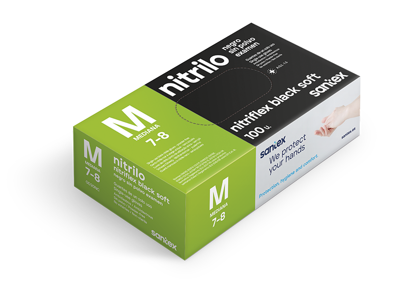 GUANTES NITRILO DESECHABLE NEGRO SIN POLVO SANTEX REFERENCIA GD20N “NITRIFLEX BLACK” – GRAMAJE 3,5 GRAMOS
