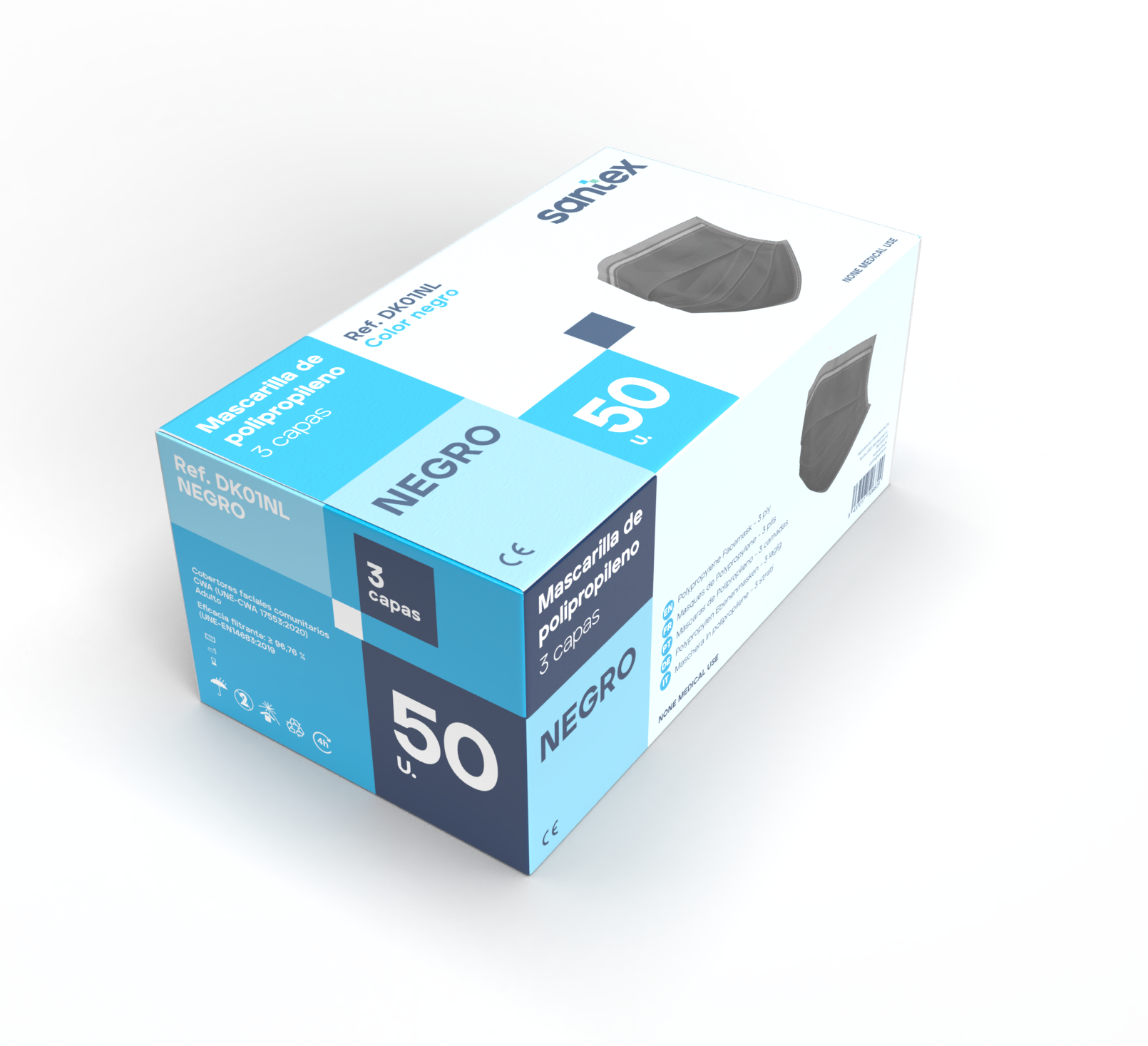 MASCARILLA NEGRA POLIPROPILENO 3 CAPAS ADULTO MARCA SANTEX
